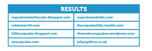 ما همچنین در اطراف کلمه کیک (cupcakes) علامت نقل قول گذاشتیم. این علامت به گوگل میگوید که تنها نتایجی را ارائه دهد که این لغت در آن صفحه ذکر شده است. از آنجا که جستجوی وبلاگهای آشپزی میتواند دامنه وسیعی داشته باشد این مورد میتواند مفید واقع شود. به این ترتیب شما نتایج را فقط به مواردی که در مورد کیک نوشته شده محدود میکنید.