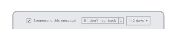 Boomrang یک پلاگین رایگان برای جیمیل است که یک مشخصه کوچک و خوب برای استفاده از آن در پیگیری اهداف مورد نظر تبلیغاتی با خود دارد. وقتی یک ایمیل میفرستید میتوانید از بومرنگ بخواهید در صورت بیجواب ماندن ایمیل در یک دوره زمانی معین آن را به شما بازگرداند. چیزی شبیه به این تصویر است: