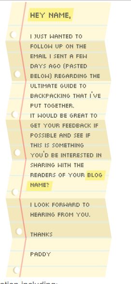 فکر میکنم بسیاری از لینکهایی که ما برای سایتمان به دست آوردهایم در نتیجه پیگیری ایمیل اولی بوده که برای درخواست لینک ارسال کردیم. مخاطبان شما افراد پرمشغلهای هستند. بلاگرهای محبوب ایمیلهای زیادی دریافت میکنند. و در دنیایی که میتوان ایمیل را در هر جایی چک کرد، ممکن است ایمیل شما یه سرعت مدفون و فراموش شود.