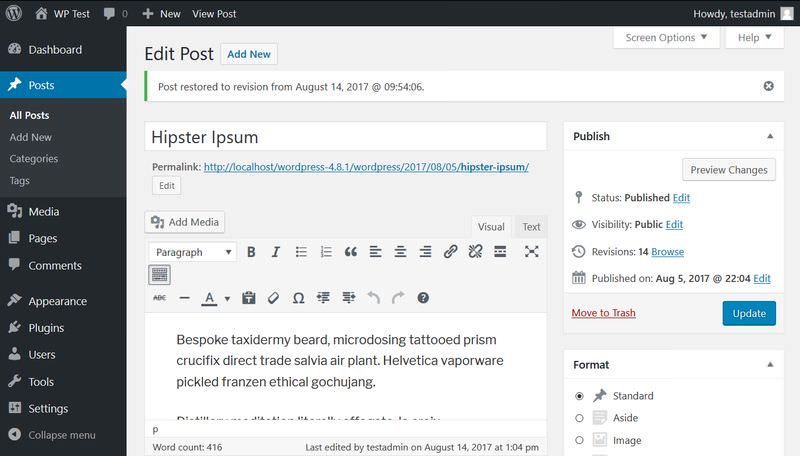 سیستم رونوشت وردپرس شبیه سیستمهای کنترل ورژن کد مانند Git یا Subversion کار میکند، فقط حالت تقریبا اتومات کامل (مجبور نیستید با یک ابزار خط دستوری اذیت شوید) دارد. این آپشن به شما این امکان را میدهد تا جریان پیشرفتهای از مدیریت محتوا داشته باشید و به میزان قابل توجهی خطر از دست دادن محتوا را کاهش میدهد.
