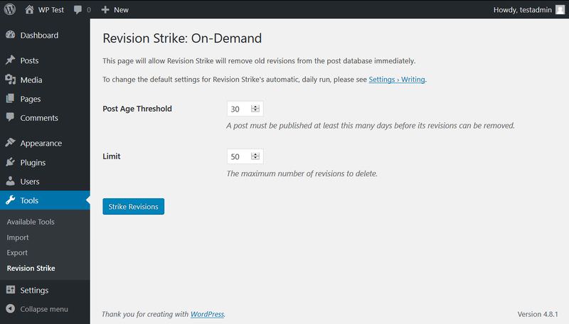 Revision Strike نیز یک پلاگین ساده است اما میتواند به شما کمک کند تا دیتابیس خود را تمیز نگه دارید. این پلاگین به شما اجازه میدهد تعداد روزهایی را مشخص کنید که پلاگین پس از آن تاریخ بازبینیها را حذف کند همزمان میتوانید مشخص کنید که حداکثر تعداد بازبینیهایی که قرار است حذف شود چه مقدار است.
